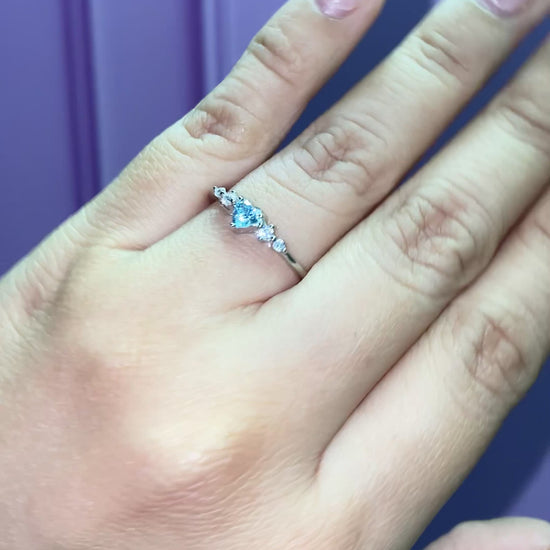 Anillo Plata 925 de mini corazón color celeste, con piedritas circonias