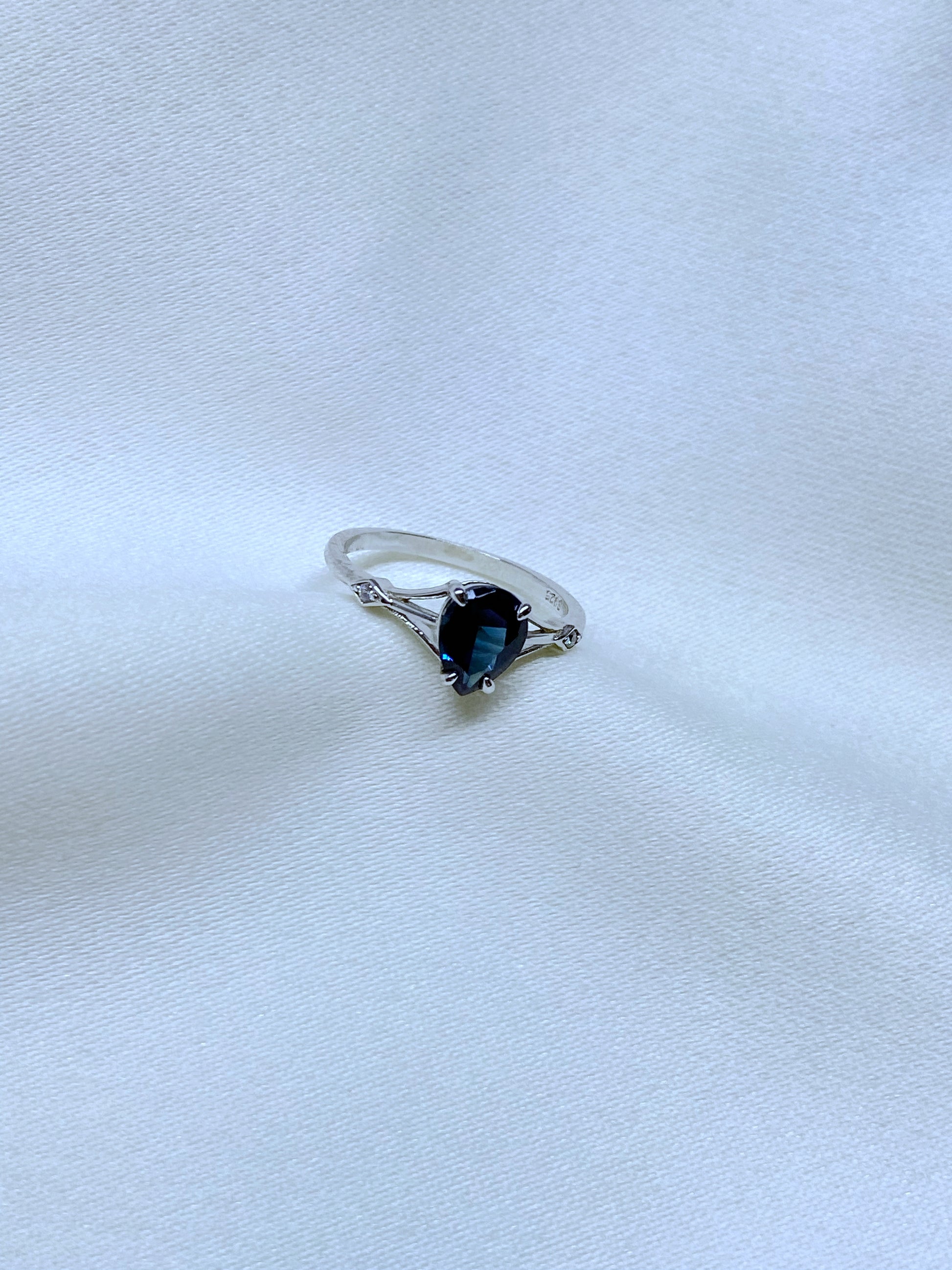 Anillo de Plata 925 con piedrita principal color azul (London Blue) con corte pera