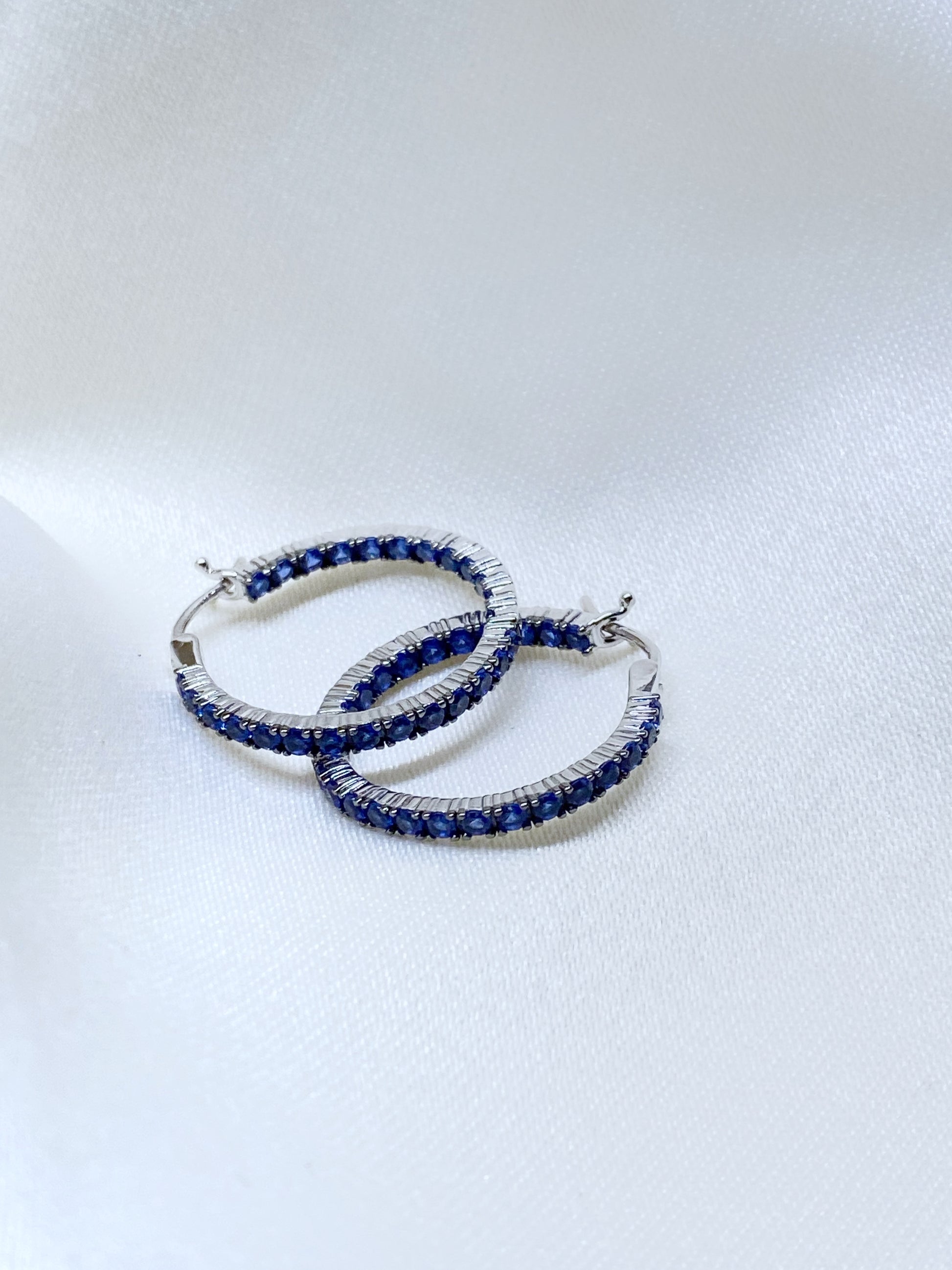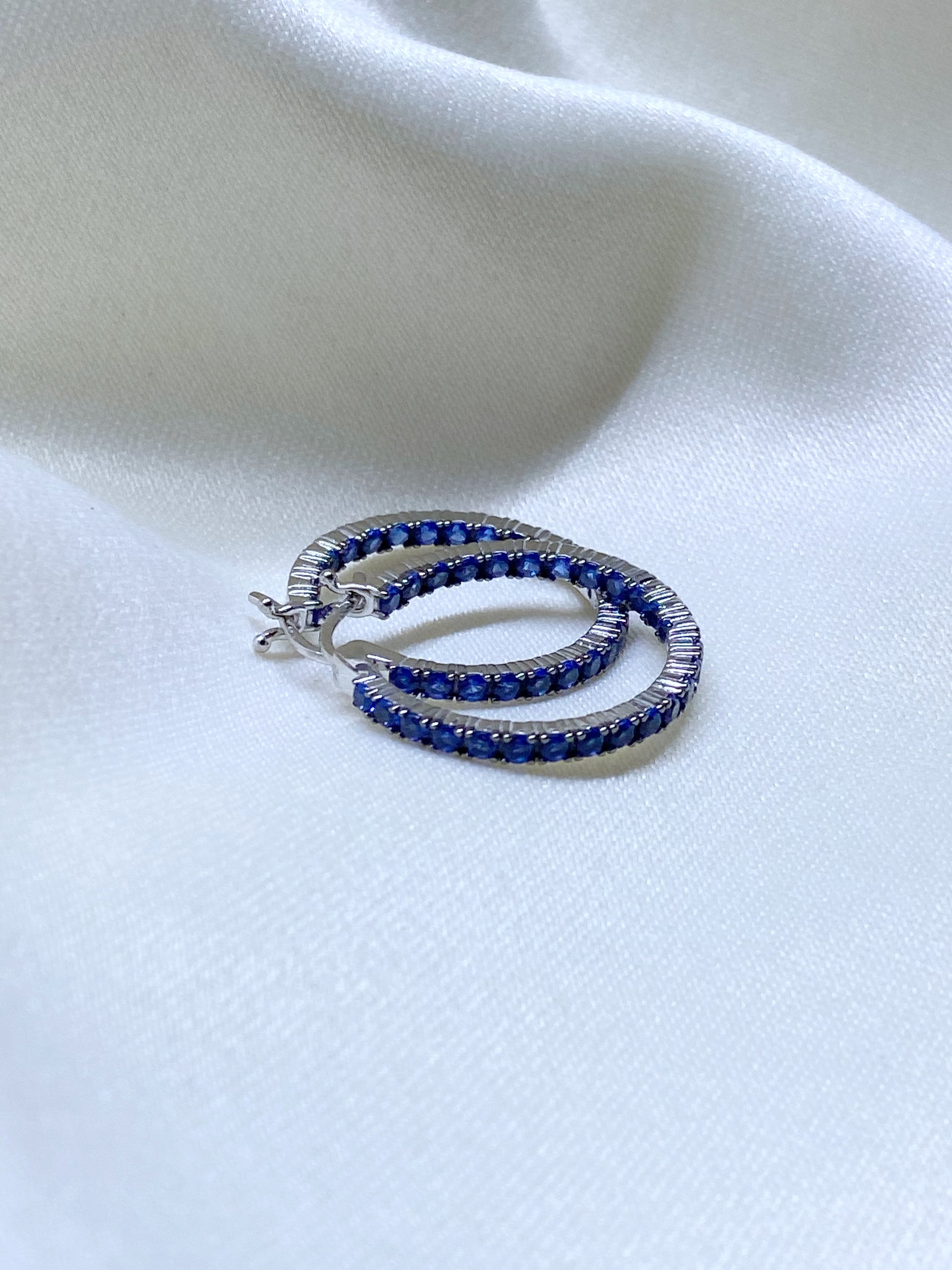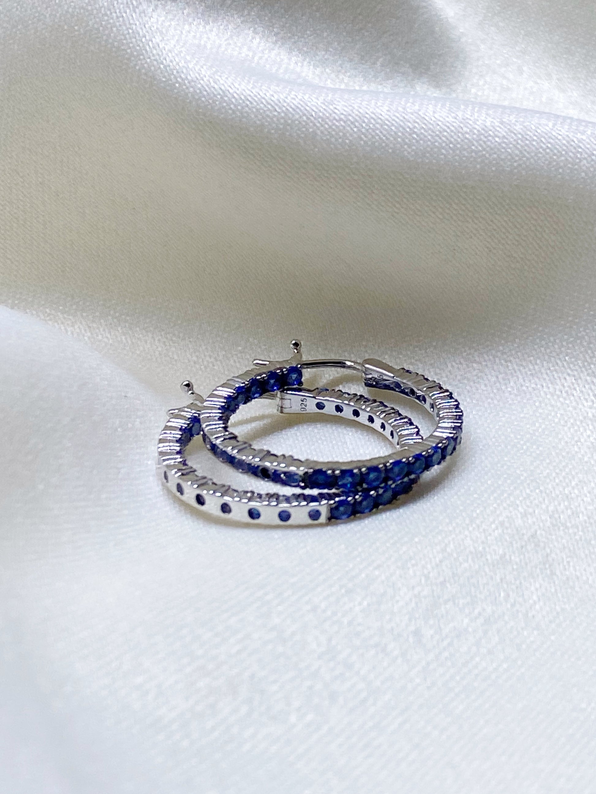 Argollas de Plata 925 rodeadas con mini circonias en color azul.