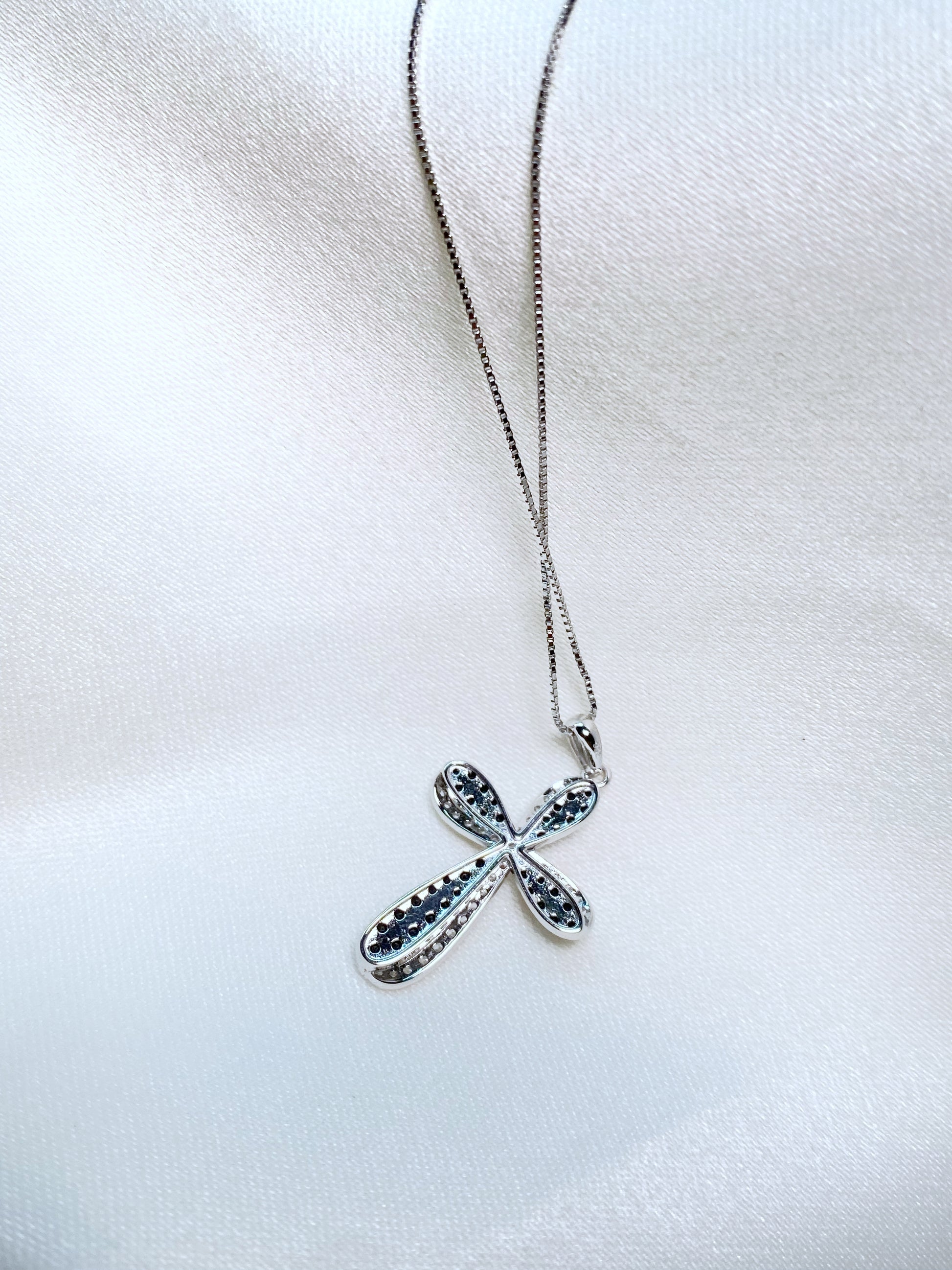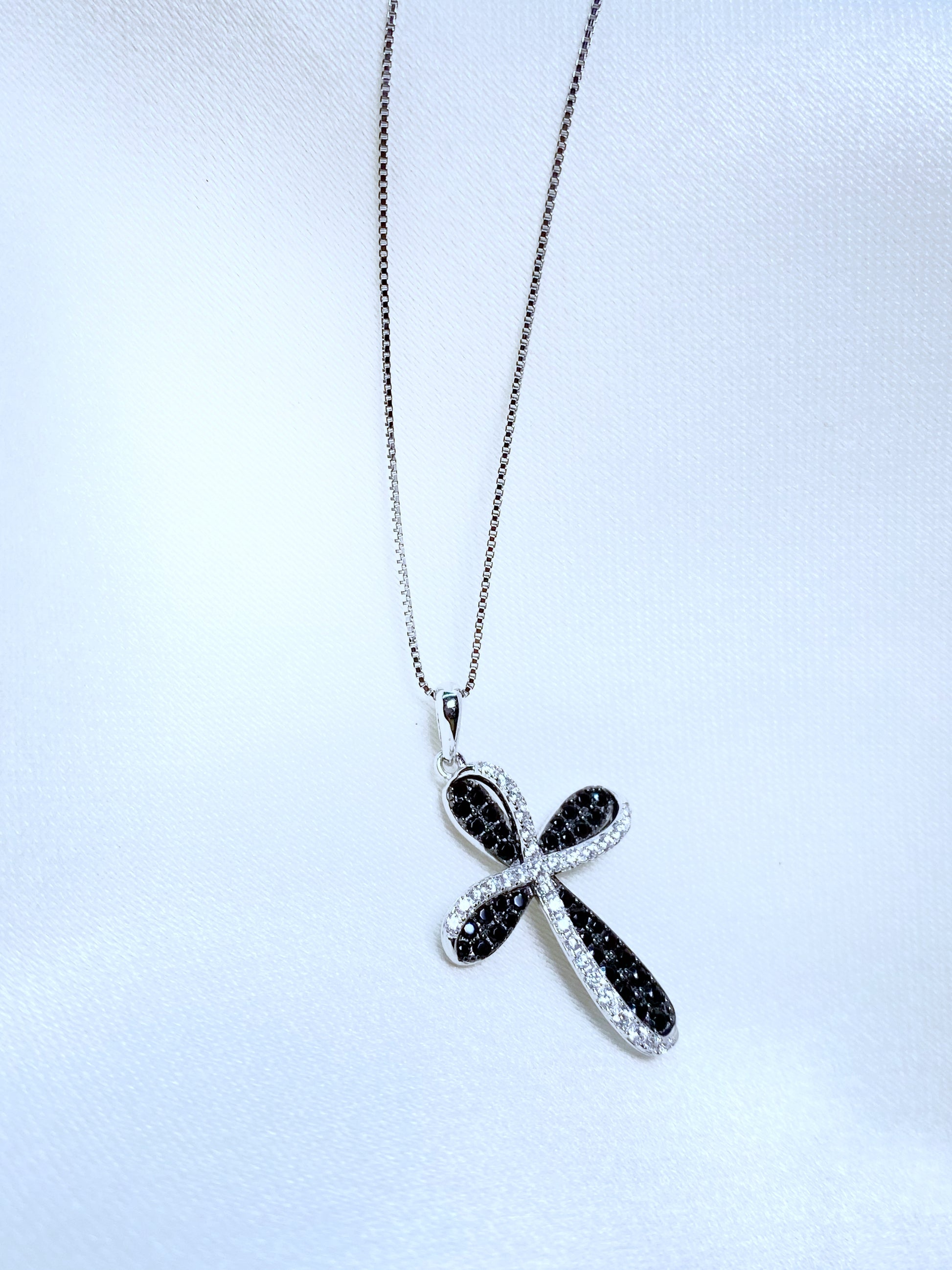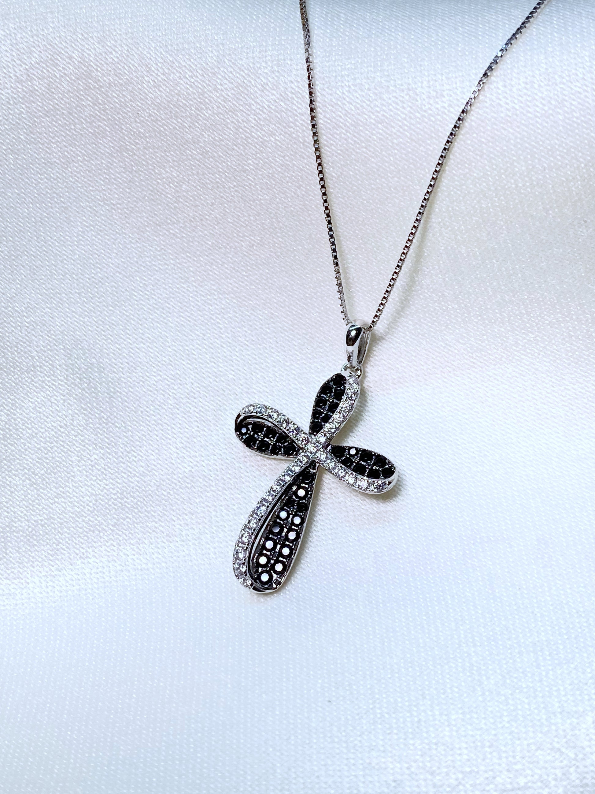 Cadena de Plata 925 con dije en forma de cruz con circonias blancas y espinela negra .