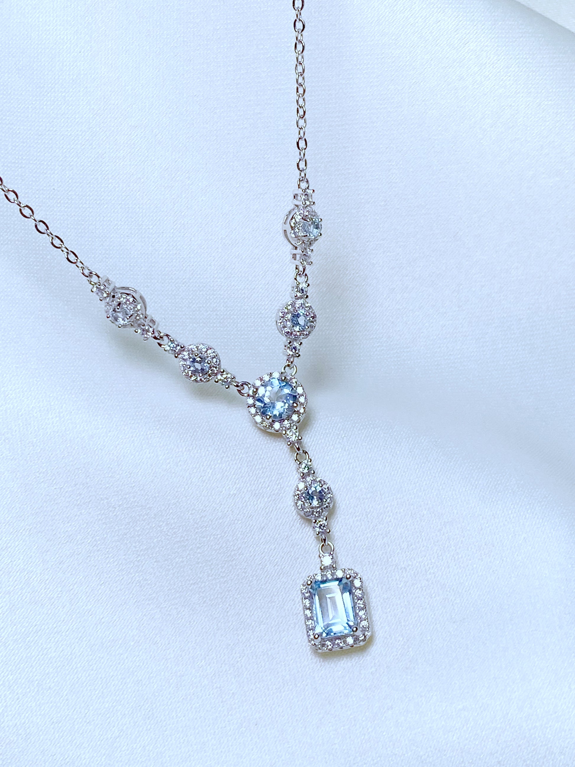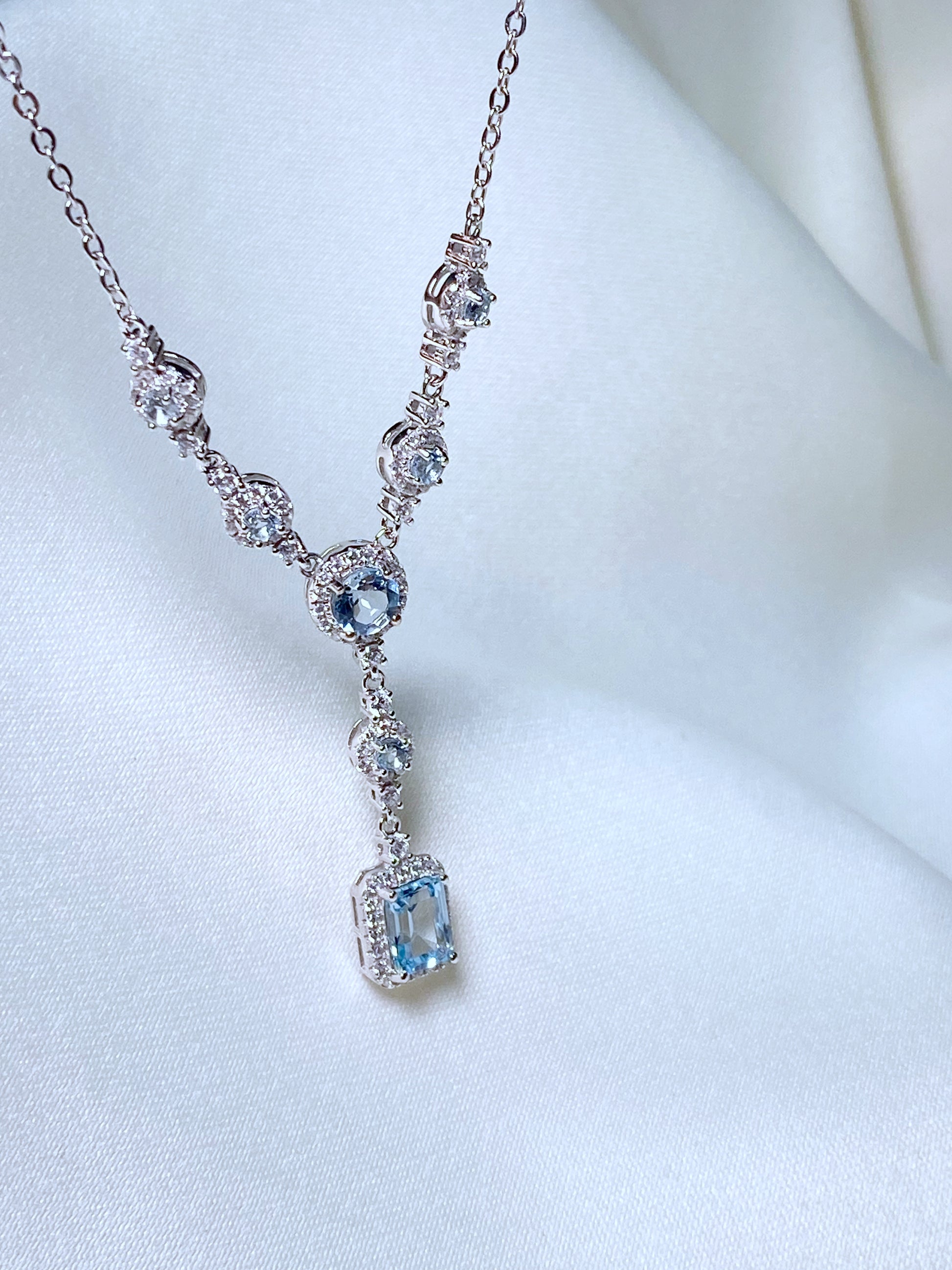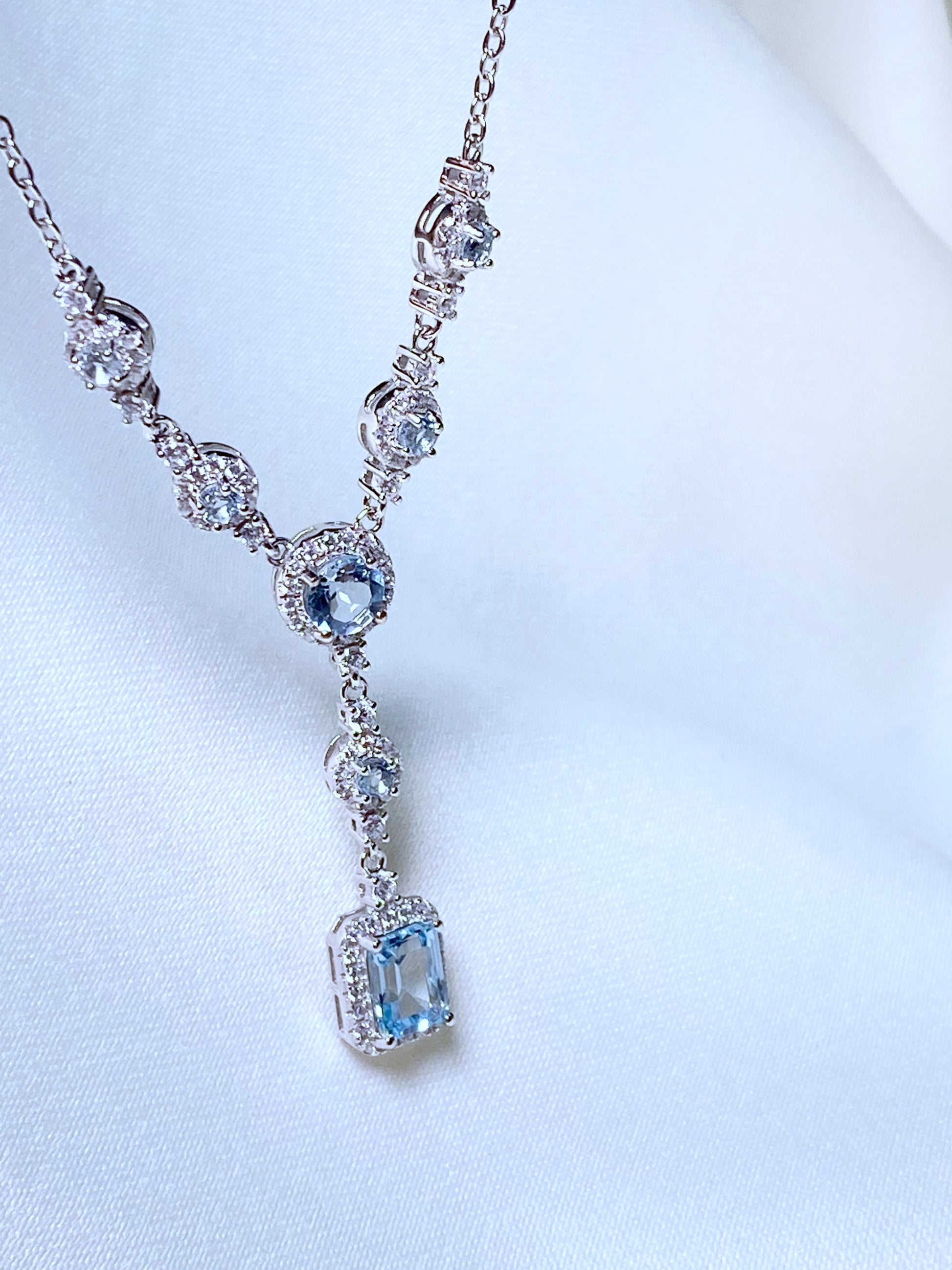 Cadena de Plata 925 con piedras topacio azul corte ovalado y esmeralda.