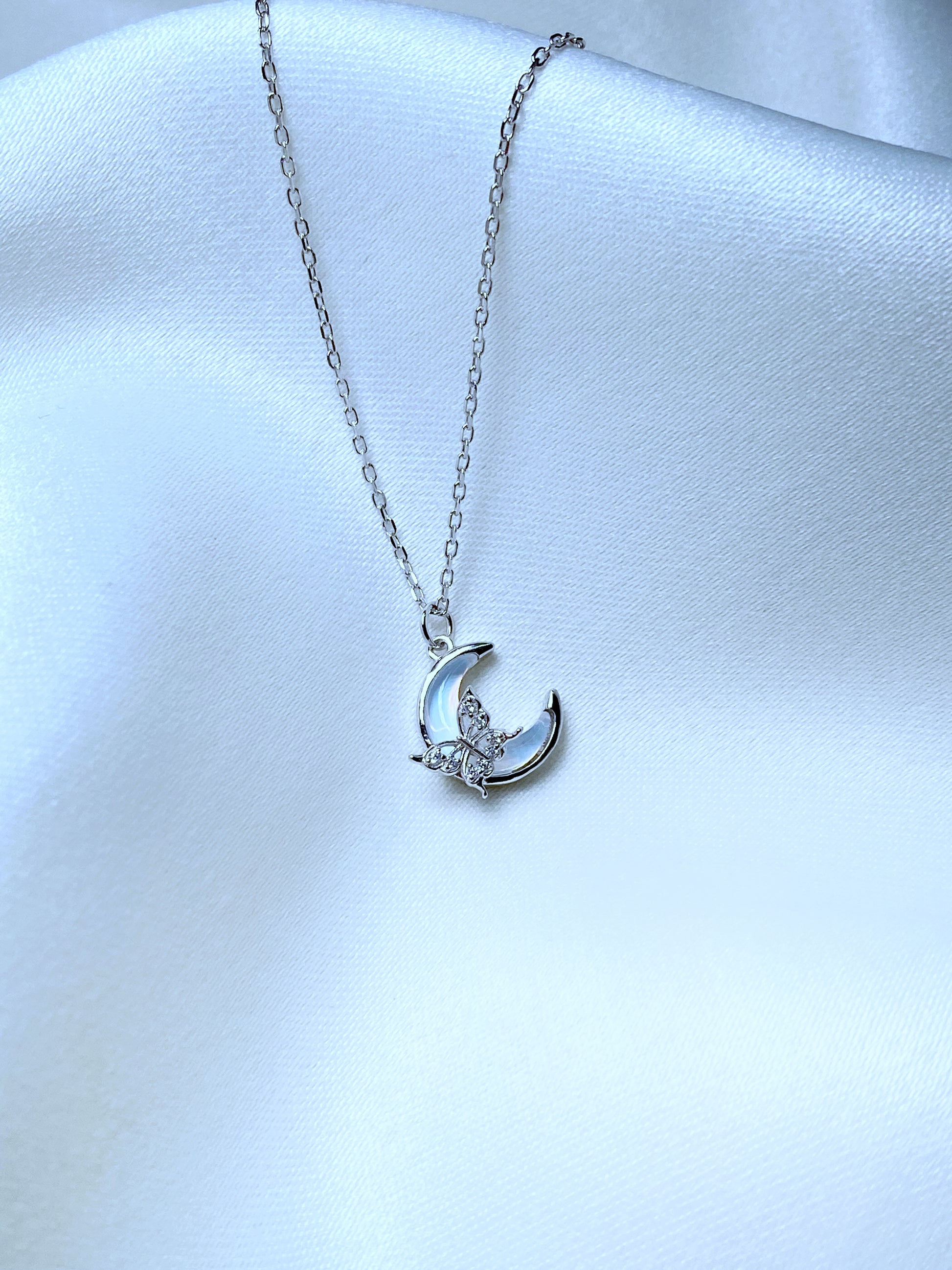 Cadena de Plata 925 con dije de mariposita y luna, medida cadenita: 45 cm largo