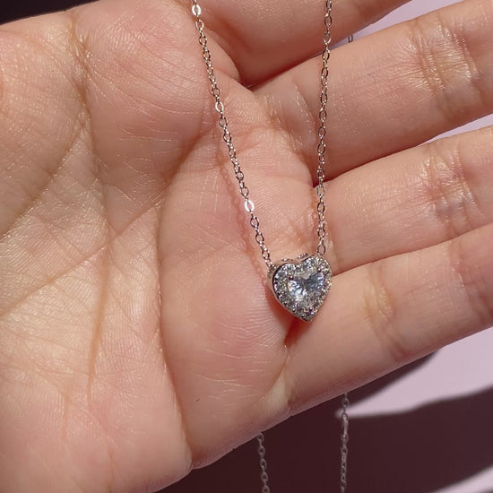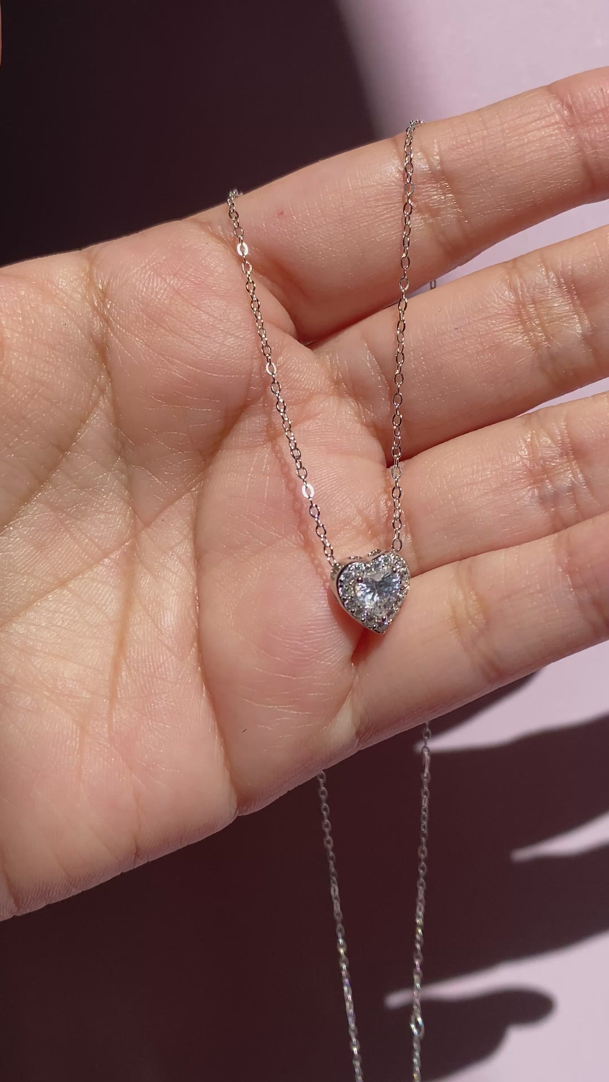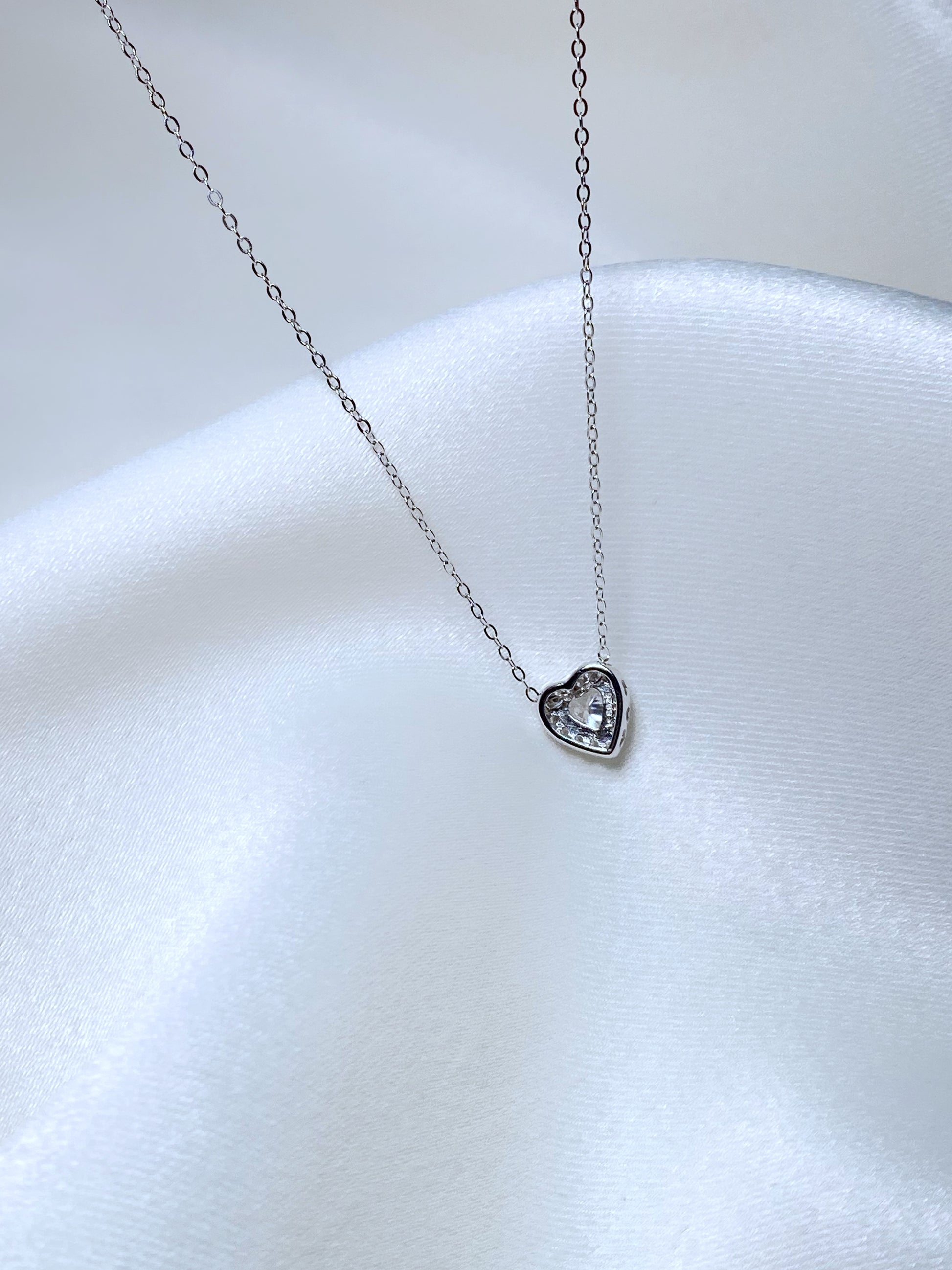 Cadena de Plata 925 con dije en forma de corazón con circonias. Largo cadenita: 45 cm