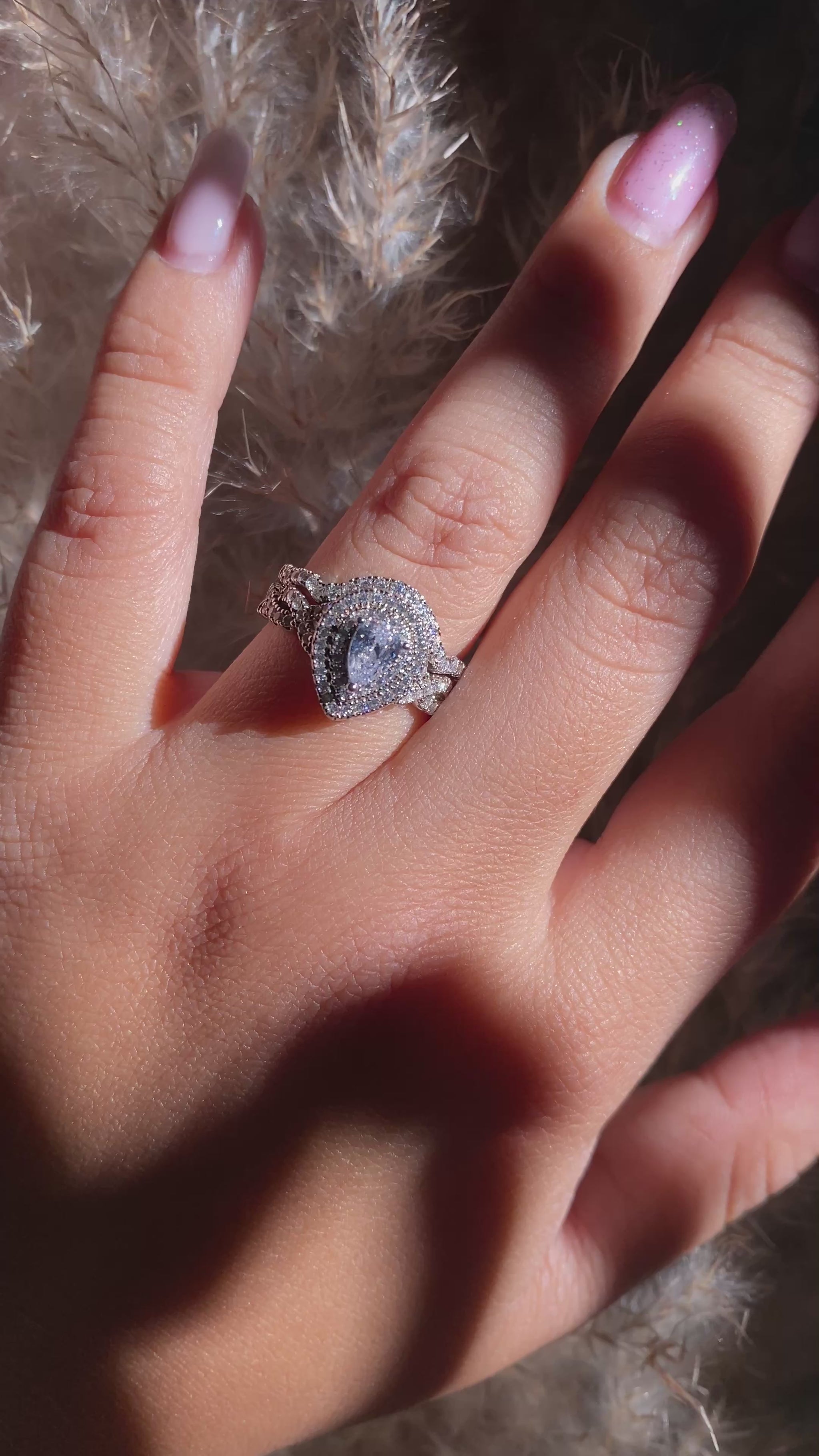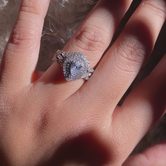 Dúo de anillos de Plata 925 con circonias. Anillo en forma de gota.